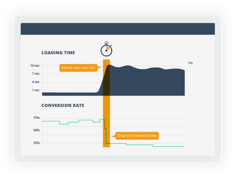 - Customizable events: See how the actions of your technical team impact your KPIs, such as updates to application code, server restarts and CDN configuration changes.