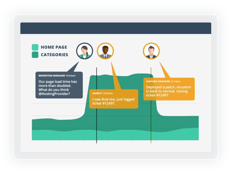 Get your full team — management, marketing, IT, agency, hosting provider — working together to boost web performance and continuously track the revenue impact of all actions.